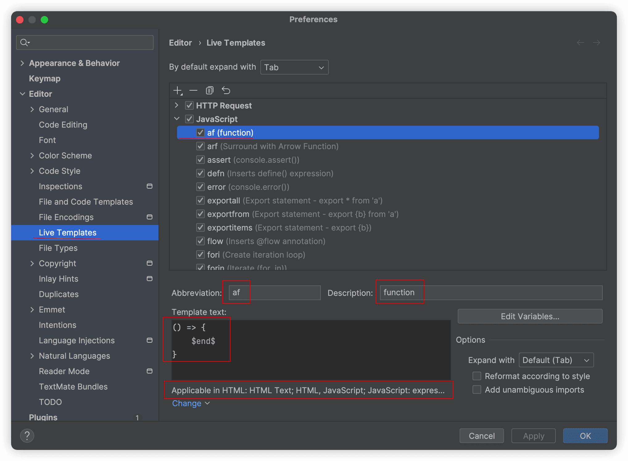 Live Template