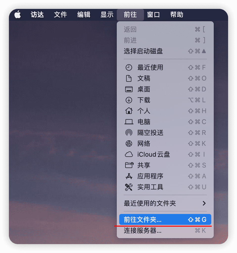 command+shift+G启动前往窗口在前往中输入地址